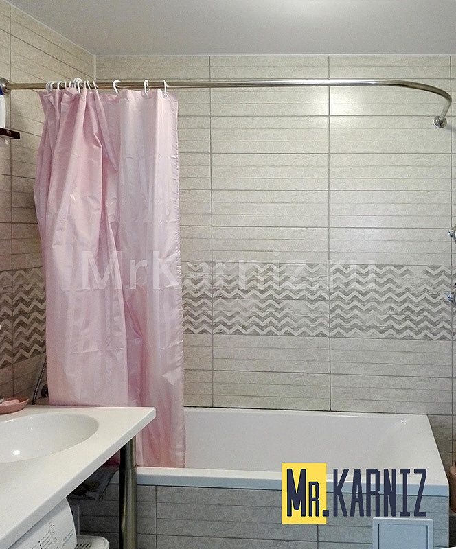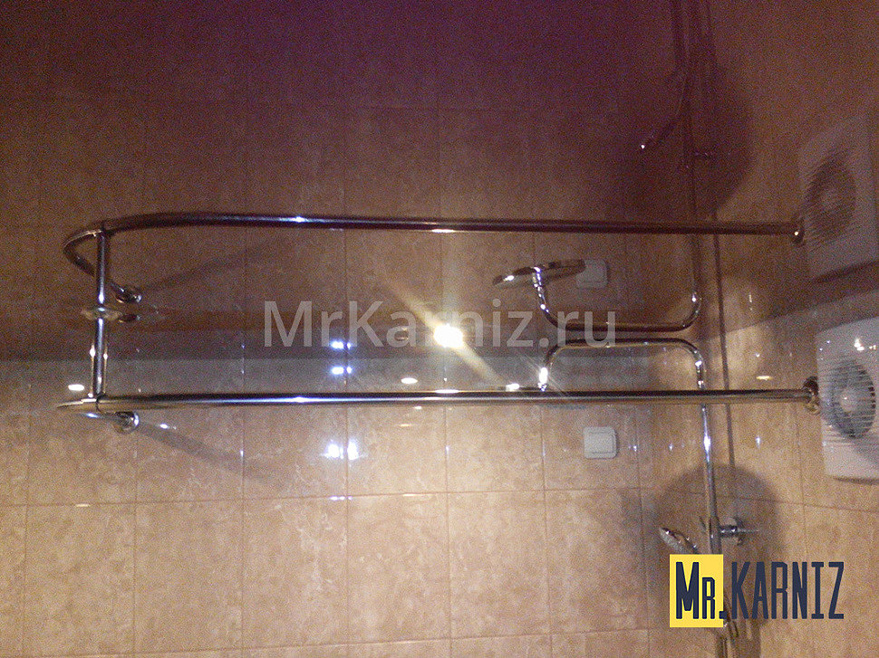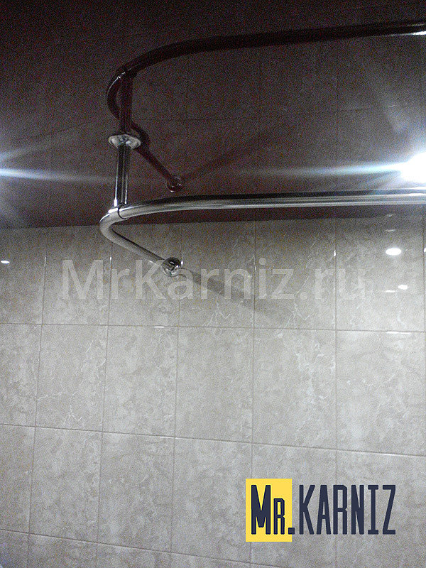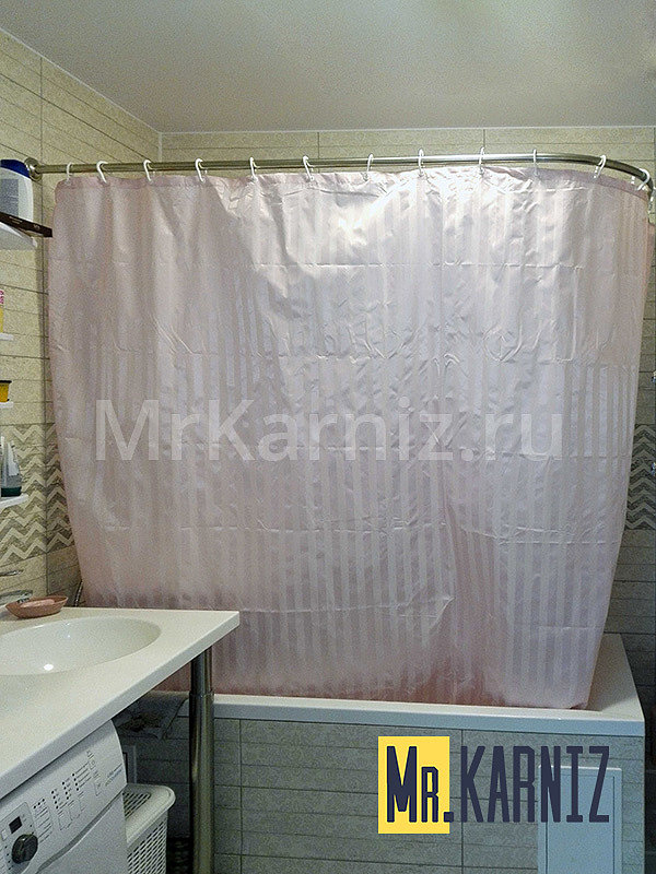Каждая такая штанга в точности повторяет конфигурацию поддонов (ванн). Благодаря карнизам с нанизанными на кольца шторками душевая смотрится элегантно, создается единая законченная композиция.